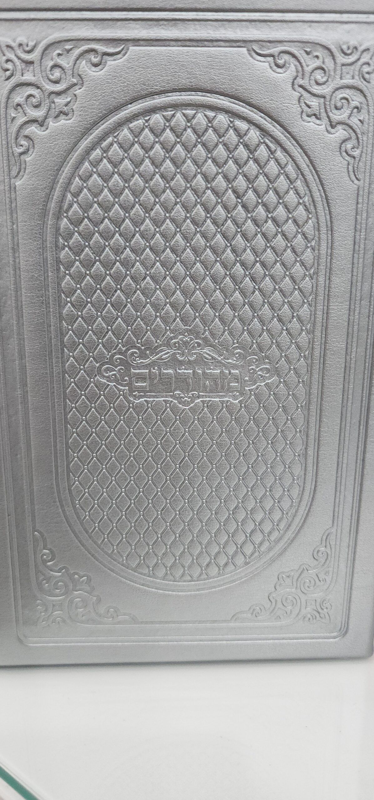 • סידור יוקרתי כריכה פי יו • צבע אפור כסוף •כתר בולט כסף טהור • נוסח עדות המזרח